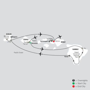 Discover the beauty of Hawaii during this magnificent vacation and enjoy pure tropical bliss as you island hop from Oahu to Hawaii and Kauai to Maui. Whether you’re admiring the natural beauty of Kauai’s Waimea Canyon, or just relaxing on the warm sands of Waikiki Beach, you’re sure to be delighted. Visit Pearl Harbor’s famous Battleship Row in Honolulu.