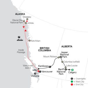 The Canadian Rockies are known for their stunning scenery, rugged mountains, breathtaking glaciers, mighty rivers, and gorgeous national parks. On this Heart of the Canadian Rockies tour, you’ll experience this breathtaking scenery and enjoy thrilling experiences as you overnight in Calgary, Banff National Park, Jasper National Park, Kamloops, Victoria, and Vancouver. Plus, you’ll enjoy a 7-night Alaska cruise where you’ll witness the amazing Inside Passage, one of the world’s most picturesque sea lanes with unbelievable beauty. Enjoy two nights in Banff National Park, Canada’s oldest national park and gateway to the Canadian Rockies.